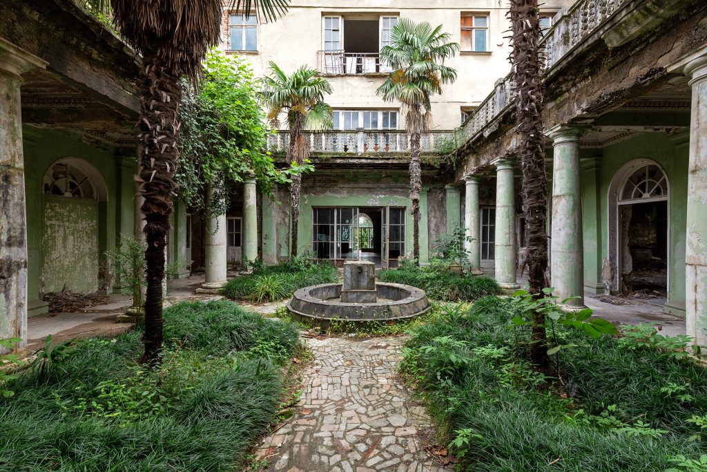 Aujourd’hui, ces territoires portent encore les traces profondes de cette histoire tourmentée : usines colossales abandonnées, sanatoriums staliniens en ruine, immeubles brutalistes envahis par la végétation, bunkers oubliés, hôtels soviétiques fantômes et monuments grandioses à la gloire d’un empire disparu.
