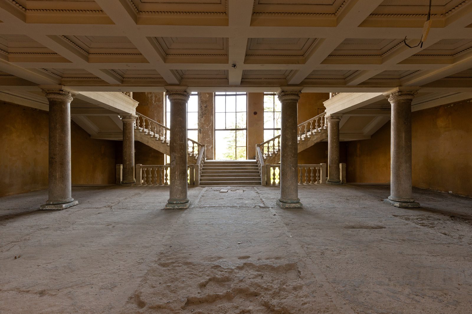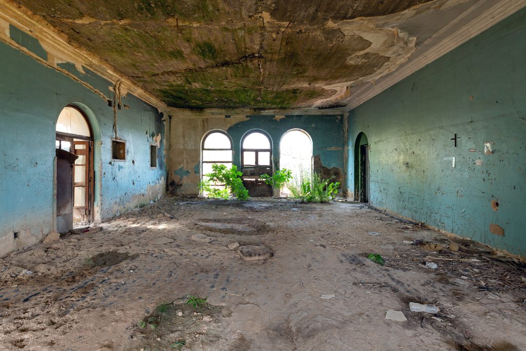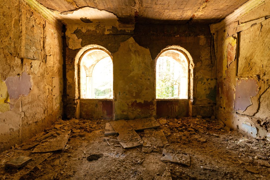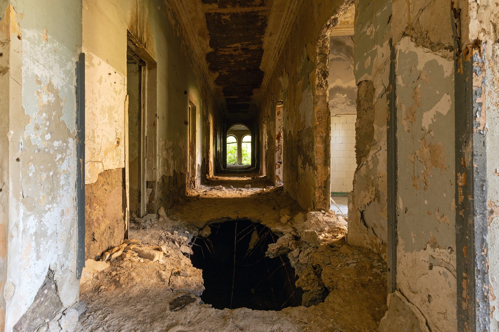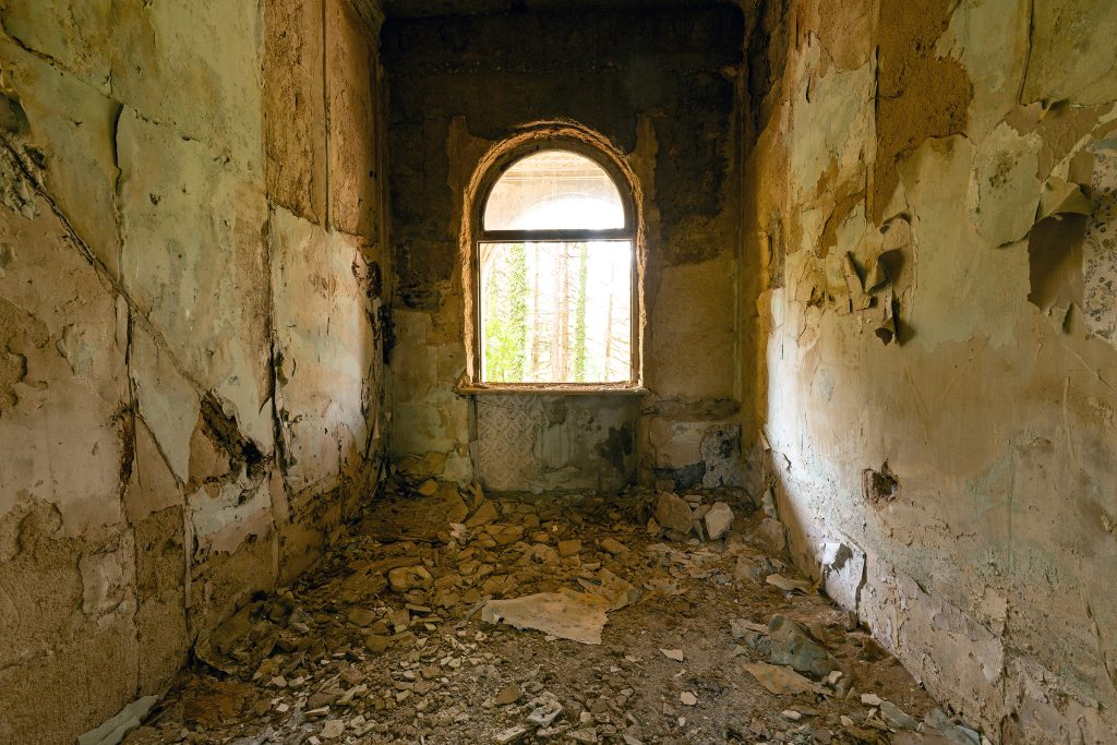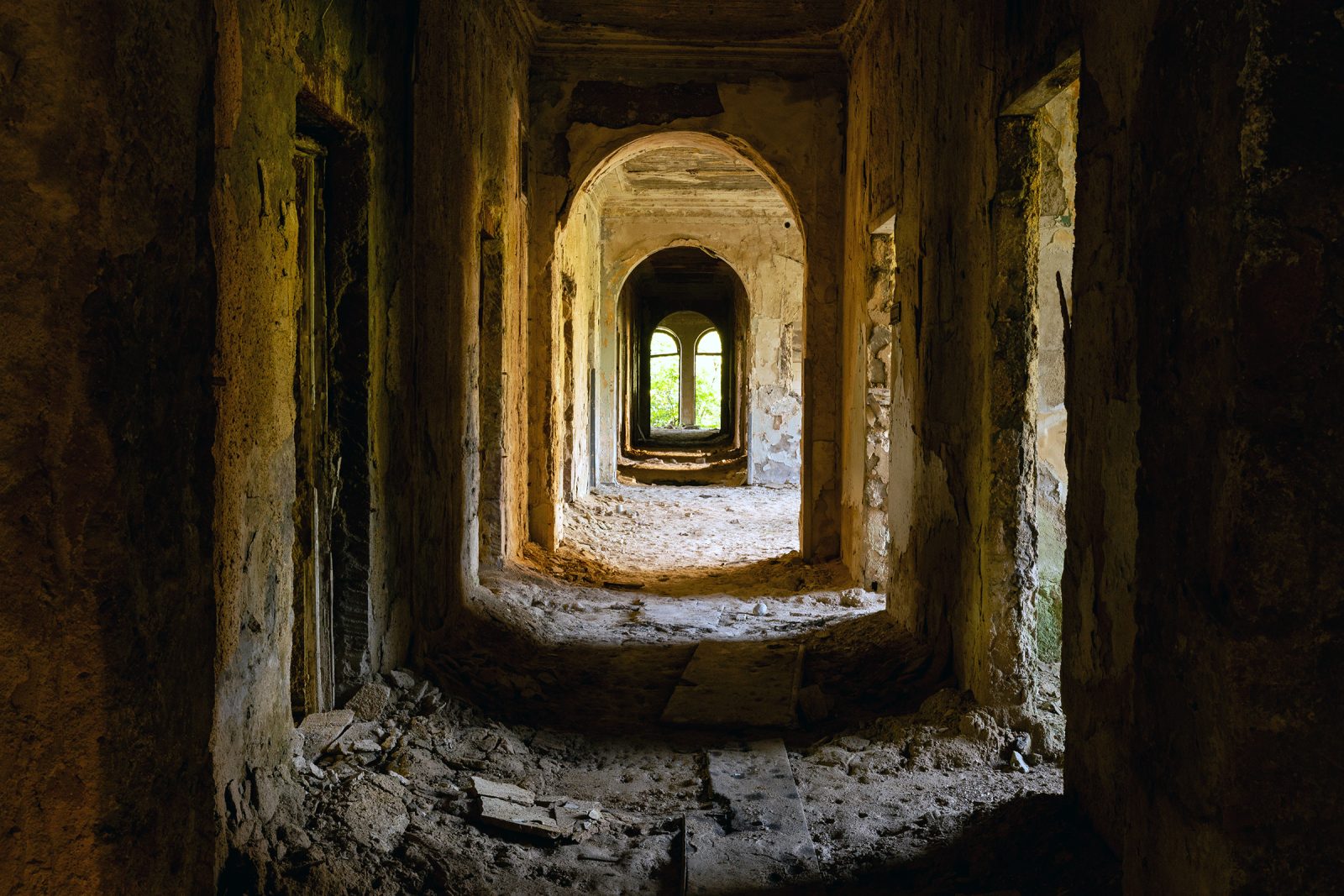 Aujourd’hui, l’Imereti reste partiellement habité par ces familles déplacées. Certaines ailes sont en ruine avancée – planchers effondrés, balcons menaçants –, tandis que d’autres parties conservent une étonnante grandeur : escaliers monumentaux, colonnes de marbre qui s’effritent lentement, moulures délicates sous la peinture qui pèle, et cette rotonde emblématique où la lumière filtre à travers les fenêtres brisées.