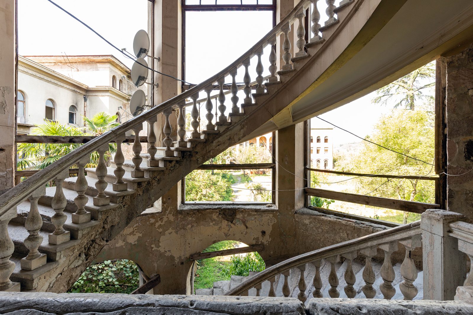 Classé monument du patrimoine culturel, le Sanatorium Imereti incarne à la perfection l’esthétique de la ruine soviétique : la splendeur déchue d’un empire qui offrait des vacances thérapeutiques à ses ouvriers, la résilience humaine face à l’abandon, et la poésie silencieuse d’un lieu où le temps semble suspendu entre l’apogée stalinienne et les cicatrices de la guerre d’Abkhazie.