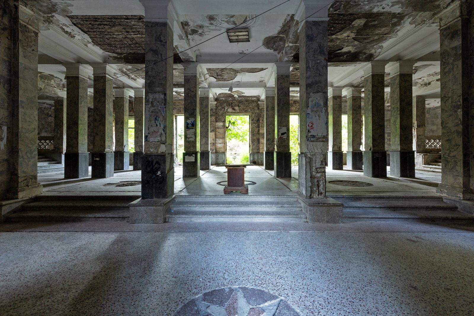 Au cœur de la ville thermale de Tskaltubo, en Géorgie, le Sanatorium Medea (anciennement appelé Sanatorium Tsekavshiri ou Sanatorium du Ministère de l’Industrie Alimentaire) incarne à la fois la grandeur de l’ère soviétique et son déclin spectaculaire.
