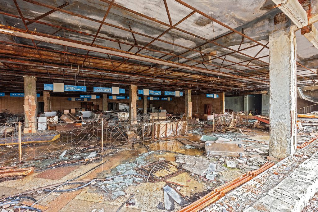 L’évacuation de la ville eut lieu le 27 avril 1986. Le magasin fut abandonné en quelques heures, avec ses rayonnages encore remplis.
